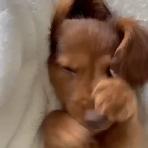 Um cachorro marrom fofo dormindo, com a cabeça apoiada nas patas.