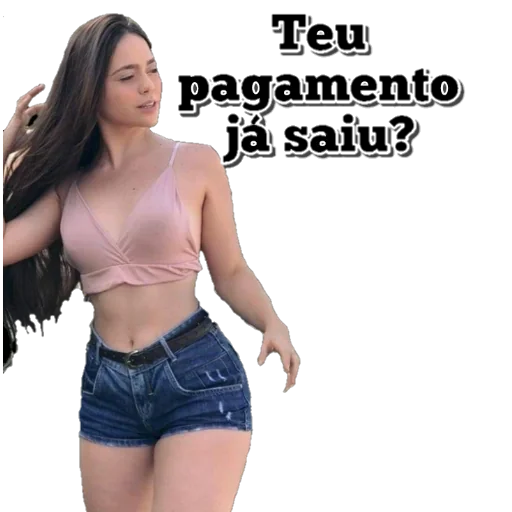 Mulher de meia coroa, com cabelo castanho e camiseta rosa, perguntando 'Teu pagamento já saiu?'