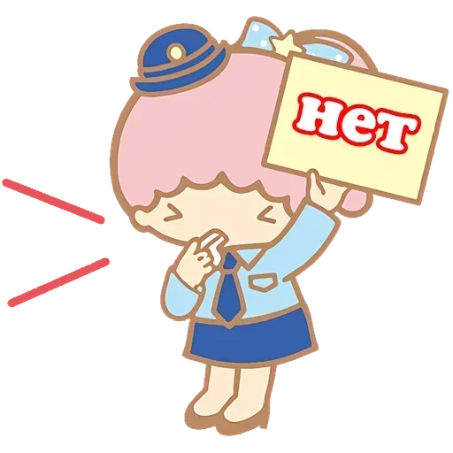 Garota de cabelo rosa com uniforme e chapéu, segurando um cartaz com a palavra 'HeT', parecendo tímida ou hesitante.
