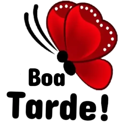 Uma borboleta vermelha com olhos e antenas, acompanhada do texto 'Boa Tarde!'