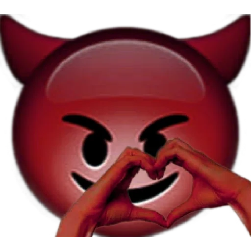Um rosto vermelho com chifres de diabo fazendo um gesto de coração com as mãos.