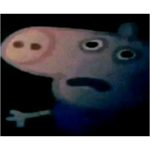 Porco com expressão surpresa, olhos arregalados e focinhos rosados, fundo preto.