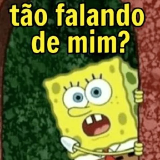 SpongeBob com expressão surpresa e texto 'tão falando de mim?'