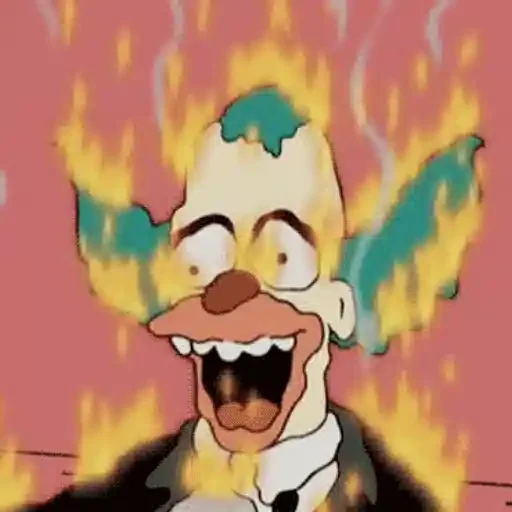 Personagem de desenho animado com cabelo verde em chamas e expressão de surpresa ou dor, usando um terno.