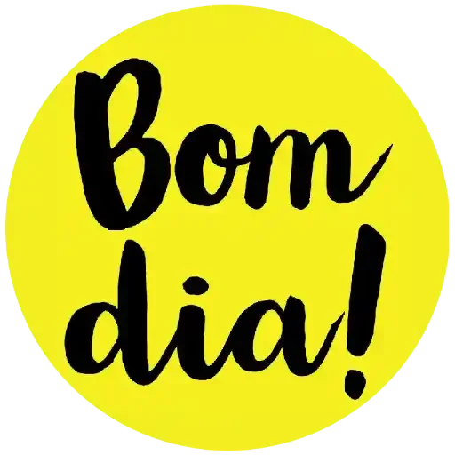 Um círculo amarelo com o texto 'Bom dia!' em letras pretas cursivas.
