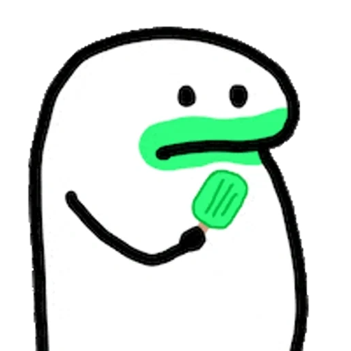 Um desenho simples de um pato com bico verde e expressão facial triste ou desapontada, segurando um objeto verde na mão.