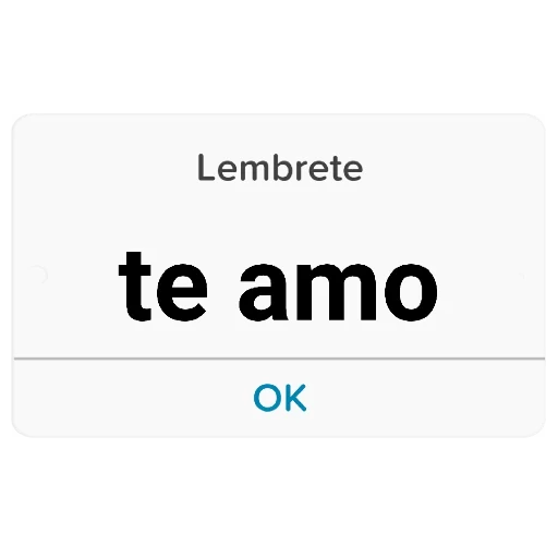 Um lembrete com o texto 'te amo' em preto, com 'Lembrete' em cinza acima e 'OK' em azul abaixo.