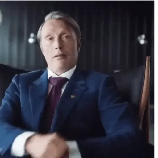 Homem de meia-idade com cabelo grisalho, usando um terno azul escuro, gravata roxa e camisa branca, sentado em uma cadeira.