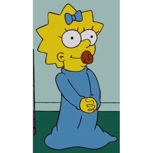 Lisa Simpson vestida com uma camisola azul, com um marshmallow na boca e as mãos juntas, parecendo pensativa ou ansiosa.