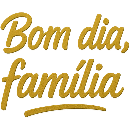 Um texto em amarelo que diz 'Bom dia, família' com uma linha curva abaixo.