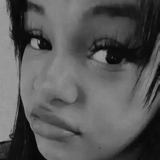 Rosto de uma mulher com expressão séria e olhar penetrante, cílios postiços, em preto e branco.