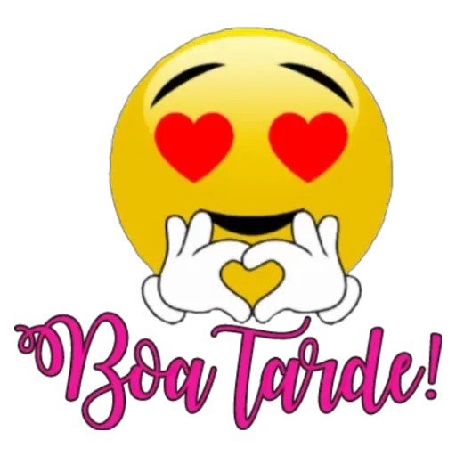 Um emoji amarelo com olhos em forma de coração e mãos fazendo um coração, com o texto 'Boa Tarde!' em rosa.