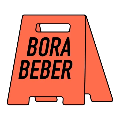 Um cavalete laranja com o texto 'BORA BEBER' em letras pretas.