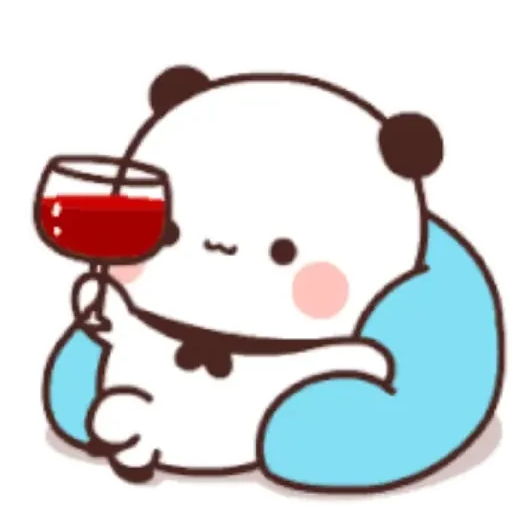 Um urso de pelúcia branco com olhos castanhos e bochecha rosa bebe vinho tinto de uma taça.