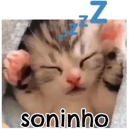 Um gatinho dormindo com a palavra 'soninho' embaixo e 'zZz' em cima.