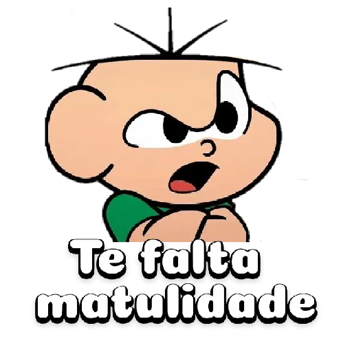 Menino de expressão brava, com texto 'Te falta matulidade'.