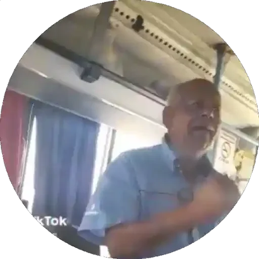 Homem de meia-idade com expressão surpresa ou chocada, vestindo uma camisa azul clara, em um ambiente que parece ser dentro de um trem ou ônibus. Há um texto 'TikTok' no canto inferior esquerdo.
