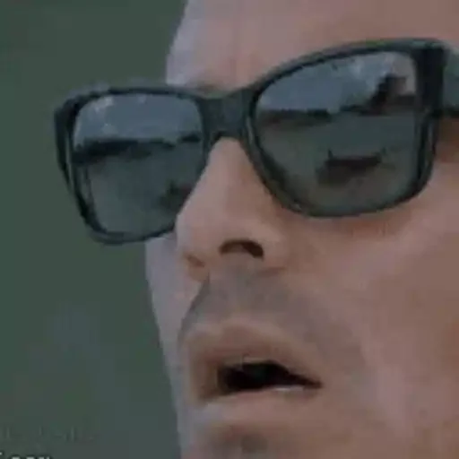 Rosto de homem com óculos escuros e boca aberta, parecendo surpreso ou reagindo a algo.