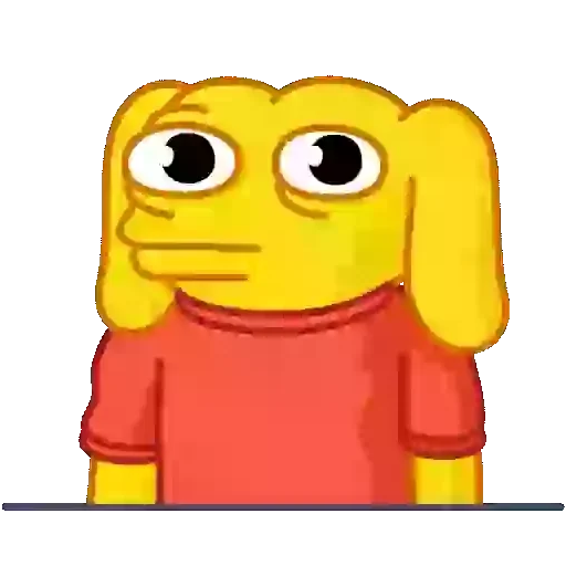 Um personagem de desenho animado amarelo com orelhas grandes e expressão confusa, vestindo uma camisa vermelha.
