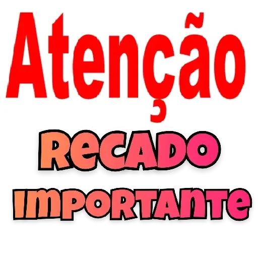 Um aviso em letras grandes coloridas: 'Atenção', 'Recado' e 'Importante'.