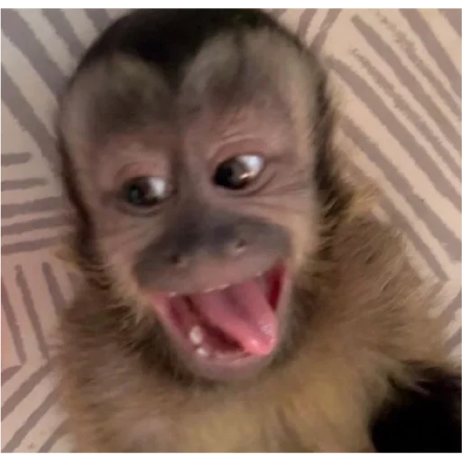 Macaco com expressão séria, mãos posicionadas ao redor da cabeça como se estivesse com dor de cabeça, fundo cinza.