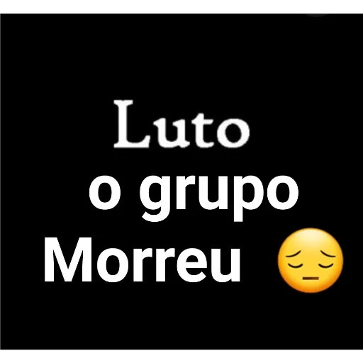 Um fundo preto com o texto 'Luto o grupo Morreu' em branco e um emoji de careta triste amarela.