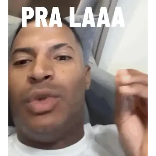 Homem com expressão facial relaxada e texto 'PRA LAAA' em cima.