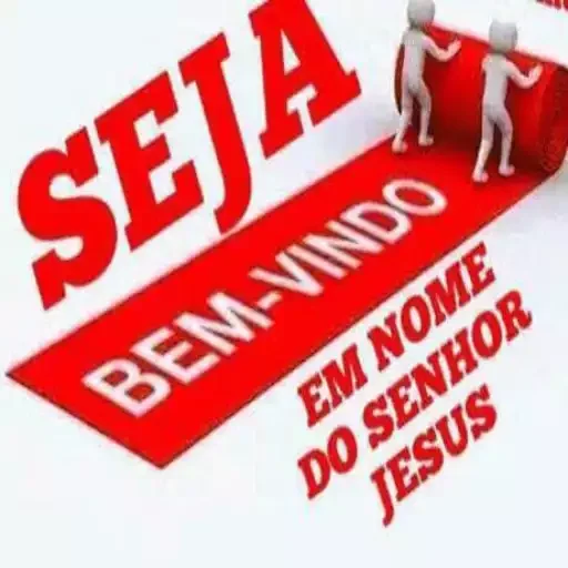 Um retângulo vermelho com as palavras 'Sejam Bem Vindos' em branco com contorno preto.