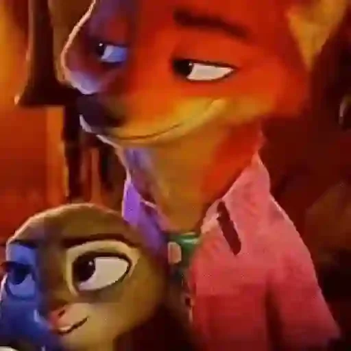 Dois personagens de um filme de animação, um grande com expressão séria e outro pequeno com olhar curioso, ambos com tons de cor laranja e marrom.