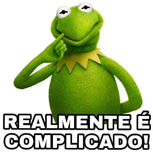 Kermit, o sapo verde do Muppet, aparece pensativo com a mão no queixo e a frase 'REALMENTE É COMPLICADO!' em destaque.