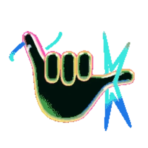Mão preta com dedos indicadores para cima, contorno colorido e linhas azuis diagonais.