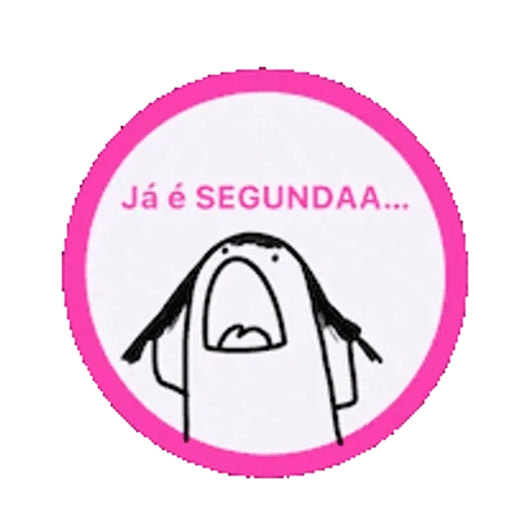 Um desenho de um animal com a boca aberta e texto 'Já é SEGUNDAA...' em rosa.