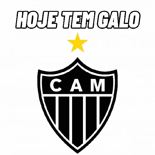 Escudo do Clube Atlético Mineiro com as letras CAM e um texto 'HOJE TEM GALO' acima, acompanhado de uma estrela amarela.