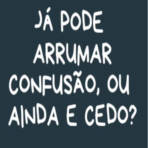 Um texto em branco sobre fundo escuro que diz 'JÁ PODE ARRUMAR CONFUSÃO, OU AINDA É CEDO?'