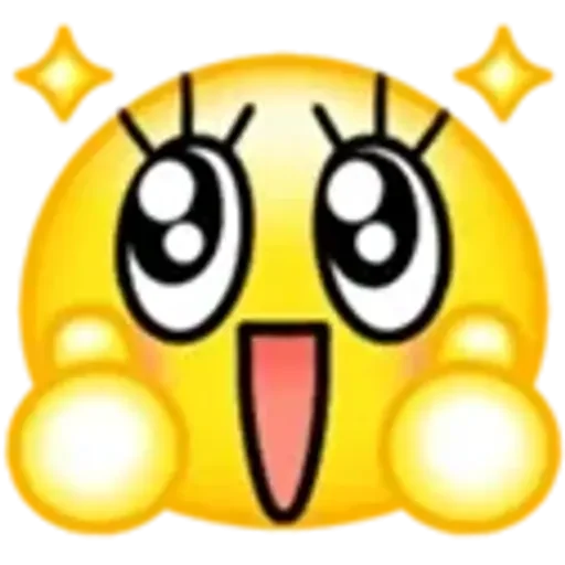 Um emoji amarelo com olhos grandes e boca aberta, parecendo surpreso ou animado, com duas estrelas brilhantes acima.