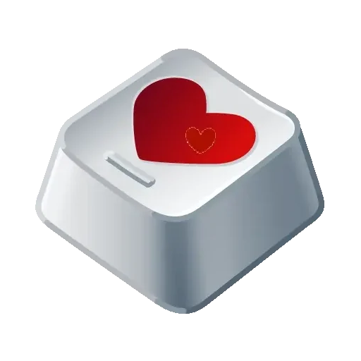 Um coração vermelho em um botão branco em uma caixa prateada.