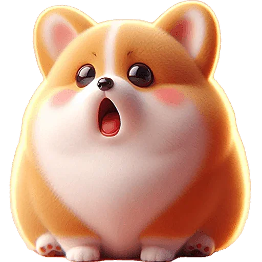 Um cachorro corgi fofo com expressão surpresa, boca aberta e bochechas rosadas.