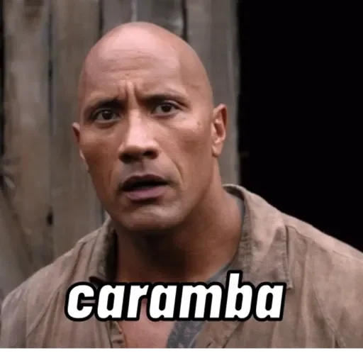 Dwayne 'The Rock' Johnson com expressão surpresa e a palavra 'caramba' embaixo.