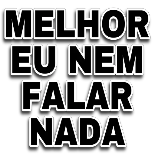 Um texto em preto com contorno branco que diz 'MELHOR EU NEM FALAR NADA'.