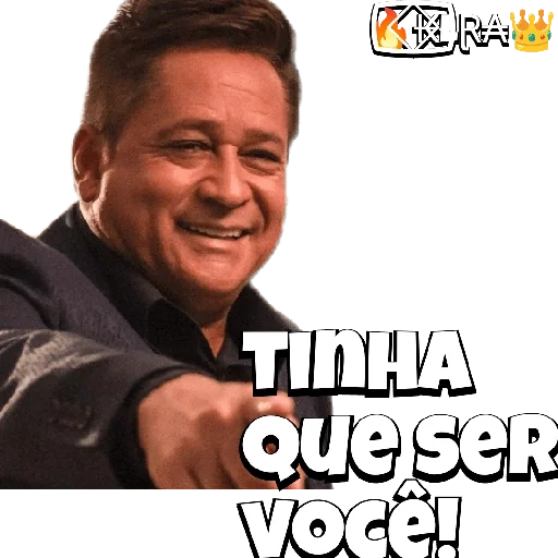 Um homem sorrindo e apontando, com o texto 'TINHA QUE SER VOCÊ!' em destaque.