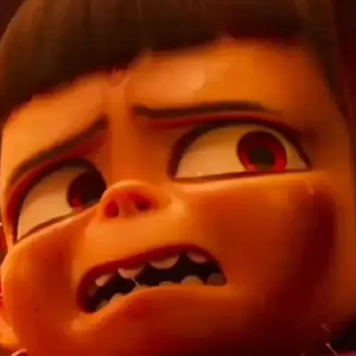 Rosto de um menino com expressão de susto ou surpresa, olhos arregalados e boca aberta mostrando os dentes.