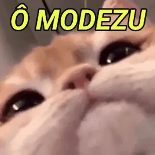 Gato com expressão engraçada e texto "Ô MODEZU" em amarelo.