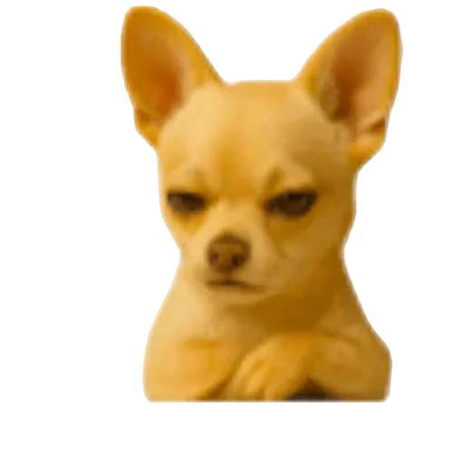 Cachorro Chihuahua com expressão séria e orelhas grandes, cor amarela.