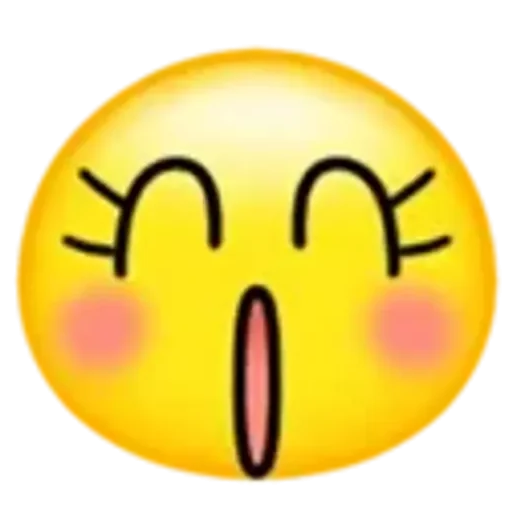Rosto de emoji amarelo com olhos fechados e boca aberta, bochechas rosadas.