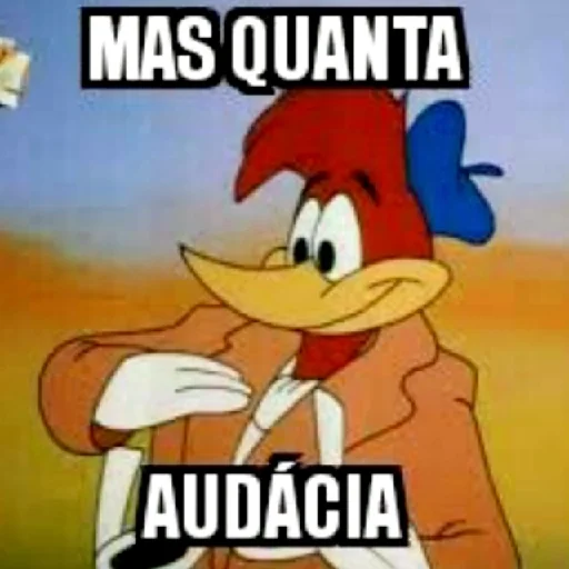 Um pássaro cartoon vermelho com expressão de desaprovação, texto "Que cara mais desgraçado" sobreposto.