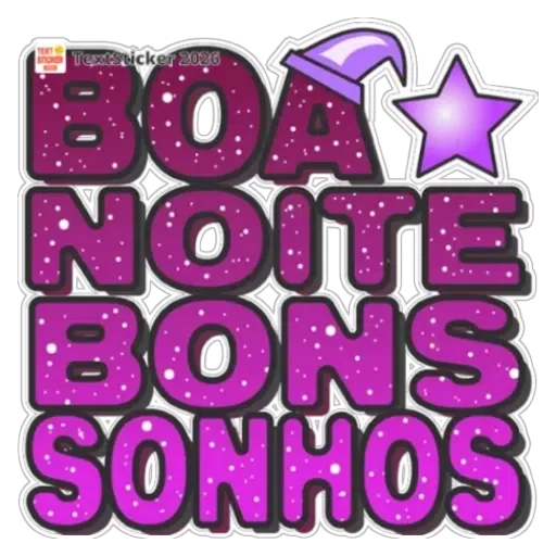 Uma figurinha com texto 'BOA NOITE BONS SONHOS' em letras grandes e cor-de-rosa com estrelas brancas. Uma estrela roxa e uma lua crescente estão ao lado do texto.
