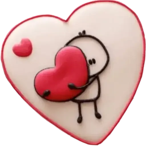 Um desenho de um coração com um personagem abraçando um coração vermelho, com outro coração pequeno ao lado. O personagem tem um traço simples e expressões faciais mínimas.