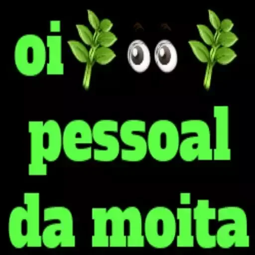 Um sticker com o texto 'oi pessoal da moita' em letras verdes grandes, acompanhado de duas folhas e dois olhos grandes e expressivos.