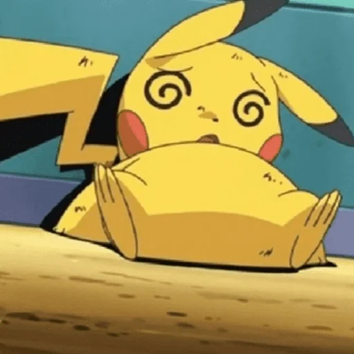 Pikachu com expressão de surpresa ou susto, olhos arregalados e bochechas rosadas, com raio amarelo ao fundo.