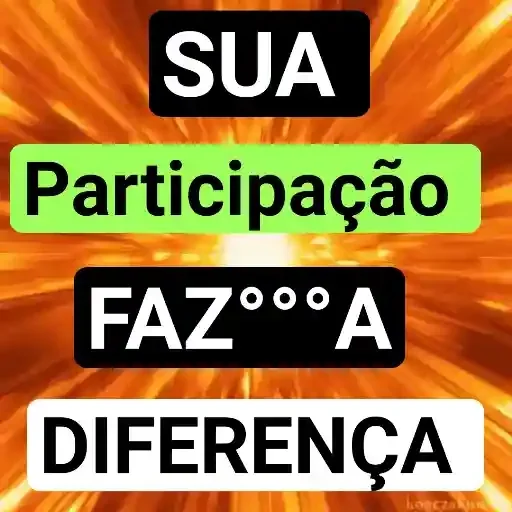 Uma figurinha com um fundo laranja explosivo e quatro retângulos com texto: 'SUA', 'Participação', 'FAZ°...A', e 'DIFERENÇA'.